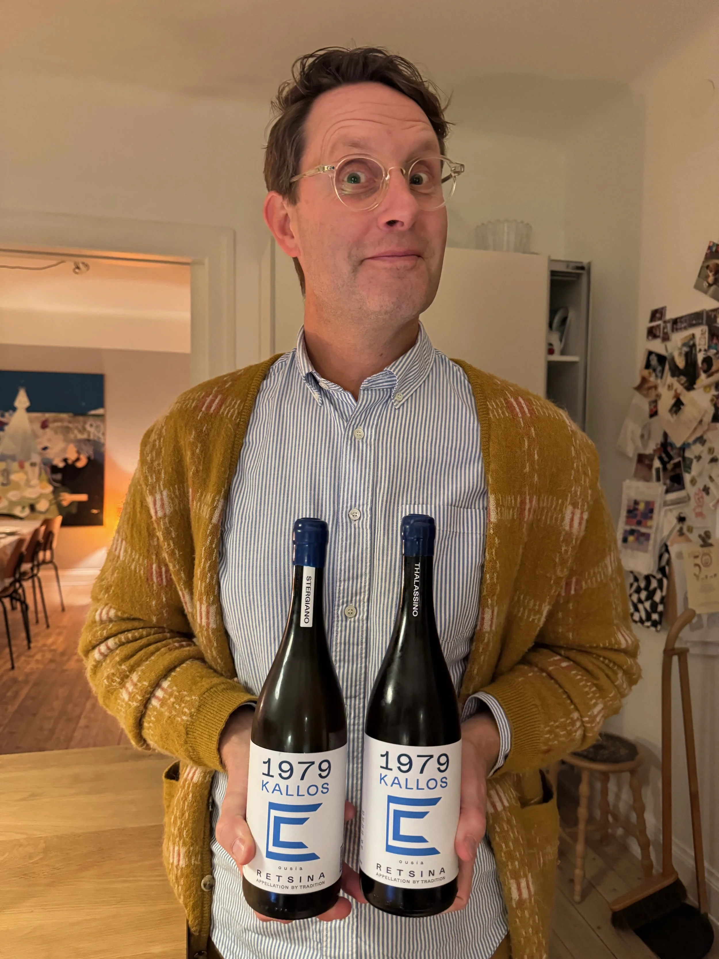 Okej, håll i er nu. Vad vi har framför oss är alltså två identiska flaskor retsina, nästan…