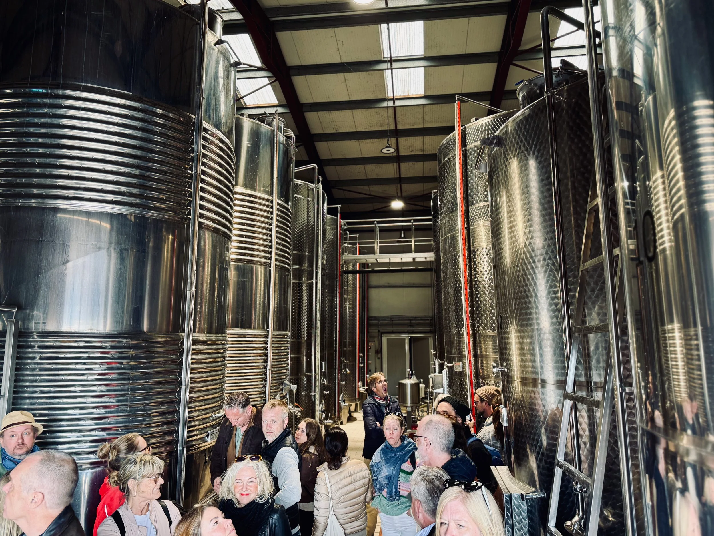 Mysigt bland stiliga ståltankar hos Kechris. Jag tog med en stor grupp från Kollektivkrogen (googla) till det urbana vineriet för att låta dem omfamna det magiska med retsina. Uppspelta, alternativt helt ur spel - tänker att bilden säger det mesta.